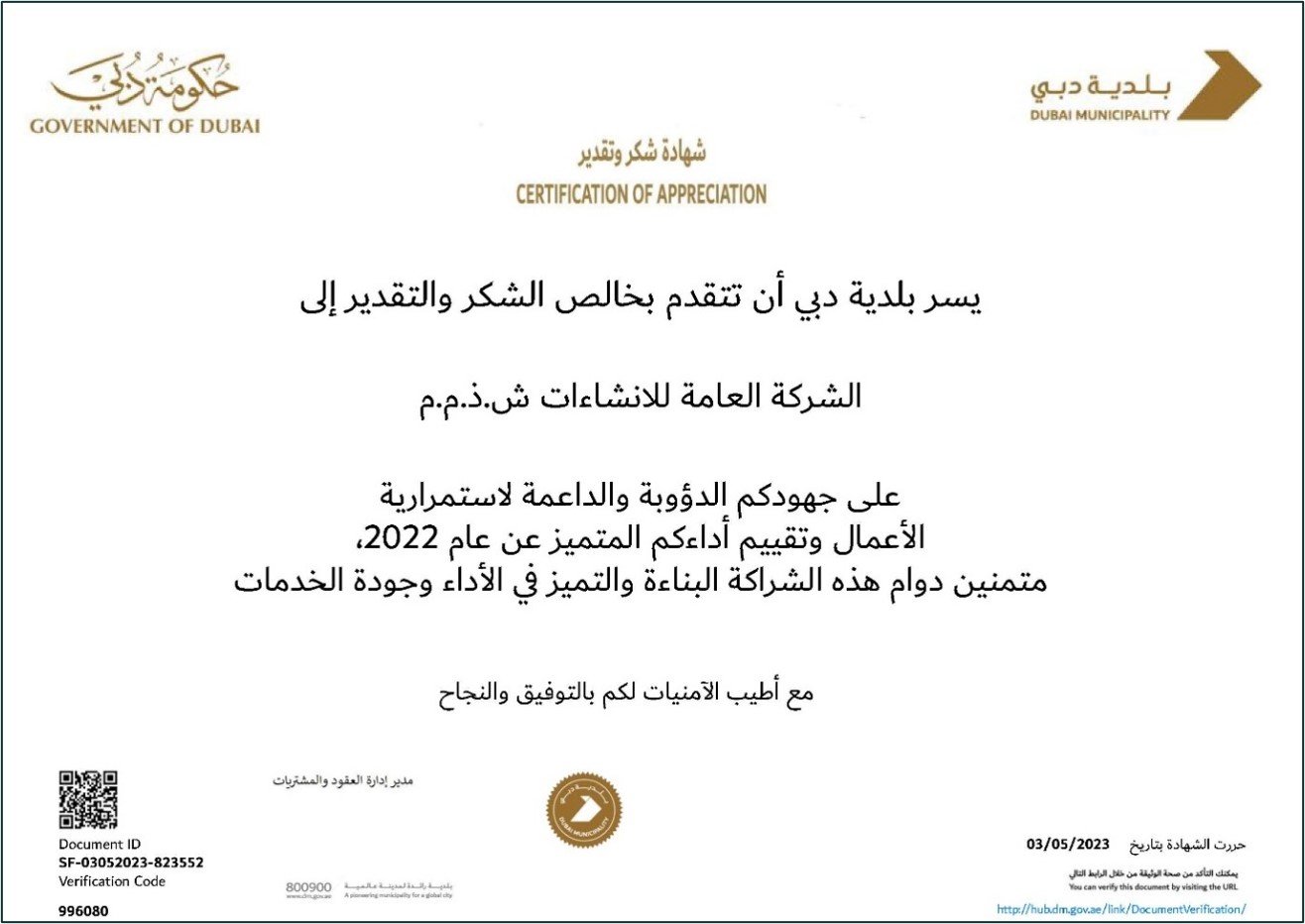 Certificate of appreciation -Dubai Municipality